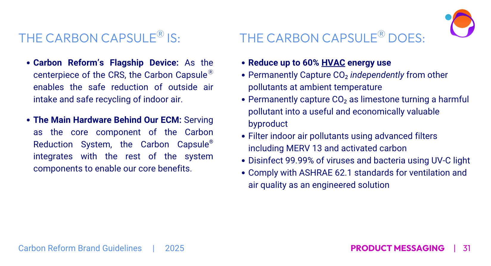 When I joined, Carbon Reform had an early-stage, investor-oriented brand that emphasized vision over value. It did not clearly communicate what the product did, the problem it solved, or the outcomes customers could expect. Visual and verbal cues signaled eco-friendly products rather than a commercially ready energy reduction system, and internal teams used inconsistent language to describe the same technology.