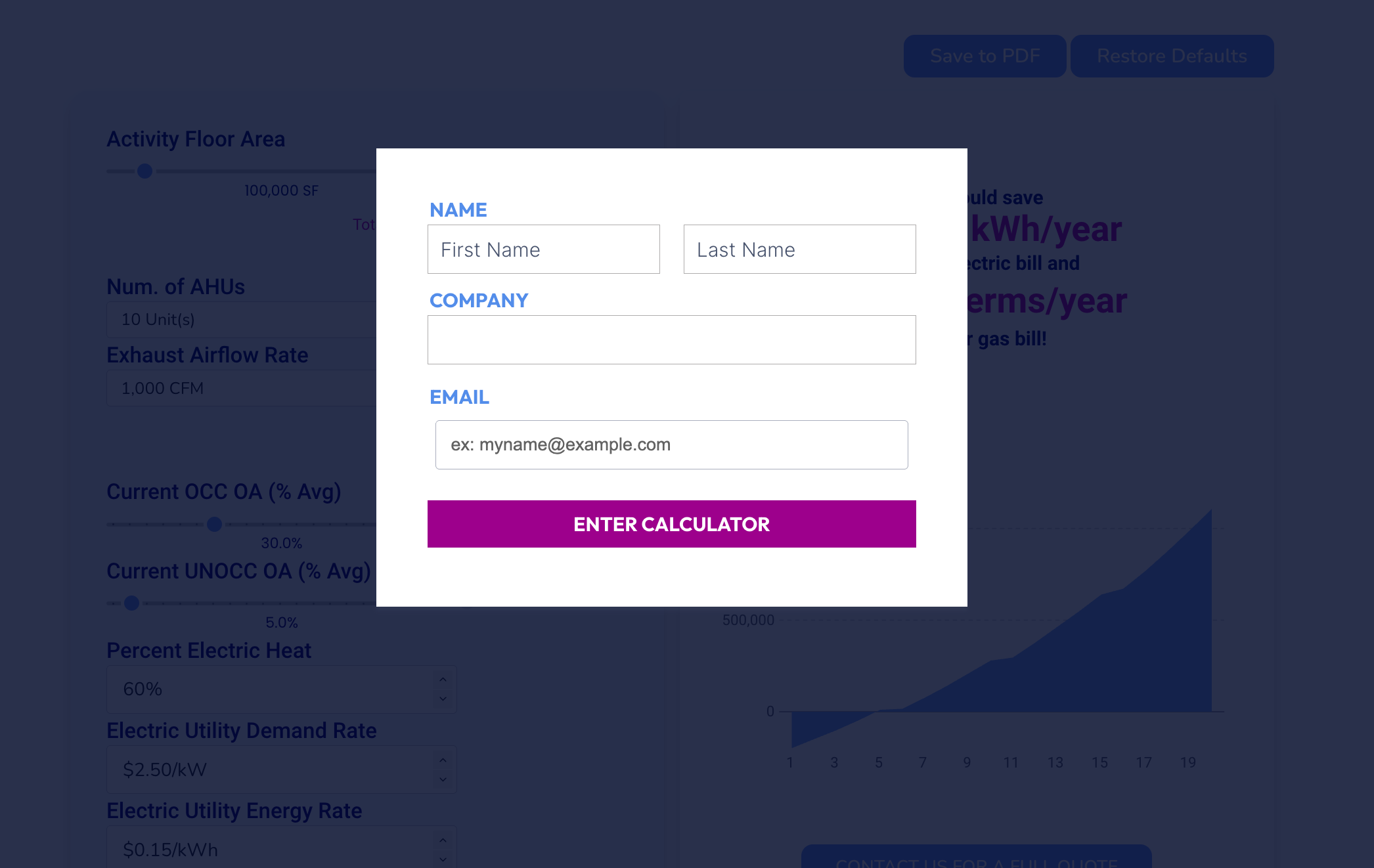 I designed and built an interactive savings and emissions calculator to help prospects understand potential impact in the context of their own buildings. I intentionally gated the tool behind a contact submission that verified email before submission, so buyers could engage meaningfully with the data while creating a natural handoff into sales conversations grounded in their specific inputs.